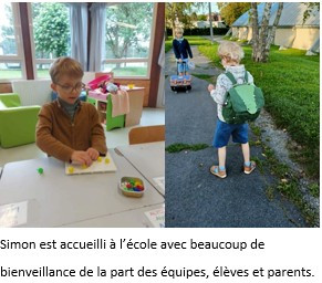 Le système scolaire valorise certaines d’entre elles plus que d’autres et correspond aux élèves "neurotypiques". Pour les enfants "atypiques" comme Simon par exemple, il est plus difficile de developper ses propres "intelligences" qui semblent moins accessibles ou utiles et de développer celles qui sont déficientes. Simon est un élève sage et attentif qui a un contact paisible avec ses camarades.
